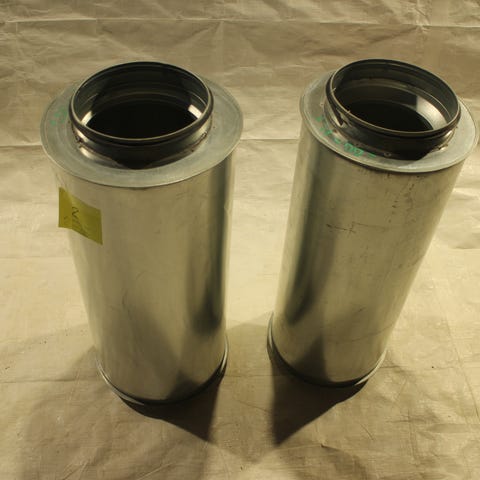 Käyytämättömät(puhtaat) äänenvaimentimet koneellisen ilmavaihdon. Kanavien liitoskoko 125 ja 160, pituus 600 ja 900mm. Halkaisija 125/300 ja 160/400mm, vaiemennuspaksuus sis normaalia isompi. Huom toinen äänenvaimennin epäkeskoliittimellä. Ainoastaan nouto äänevaimentimien koon takia, ei mahtuu toridiili pakettiikokoon.