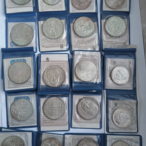 Hopea-aarre juhlarahakokoelma. 8kpl 26g 925 hopeisia kolikoita todistuksineen.