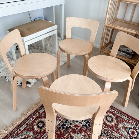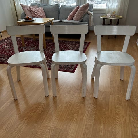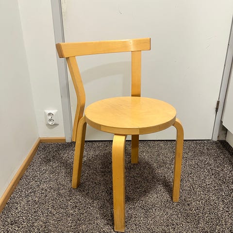 Artekin 68 tuoli, koivua. Noin 1960-luvulta talttapääruuveista päätellen.