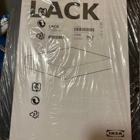 Ikea Lack hyllylevyt, 2 kappaletta, värit musta ja valkoinen. Levyt ovat suorakaiteen muotoisia ja sopivat seinähyllyiksi. Nouto Verkkosaaresta.