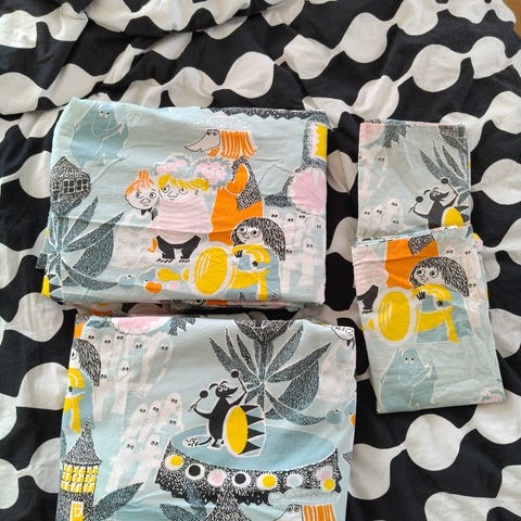 Myydään uusi ja käyttämätön Muumi Rakkaus pussilakanasetti. Sisältää pussilakanan 150x210 cm ja tyynyliinan 50x60 cm. Ostaja vastaa toimituskuluista.