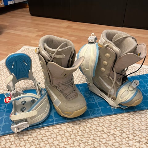 Nidecker 120 cm lumilauta ja monot noin kokoa 32 - 34. Mukana karkuremmi.
