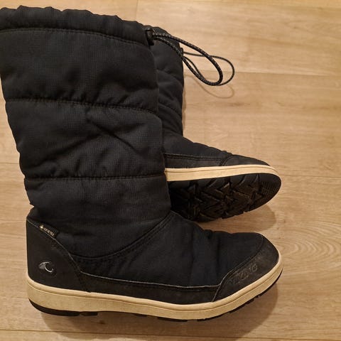 Viking lasten talvikengät koossa 35 (sisäänpohja 22cm). Päällä on halkeama (katso kuva). Saappaita voi käyttää jatkossakin lumisella säällä.