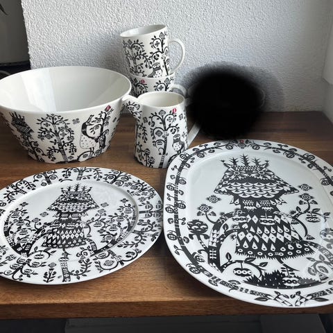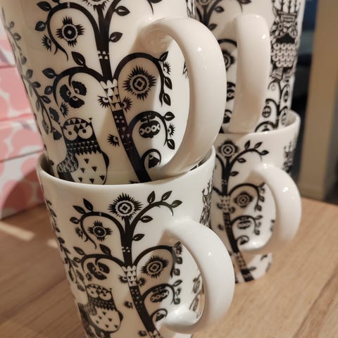 Neljä kappaletta isoja Taika-mukeja. Musta-valkoiset. Yhteishinta