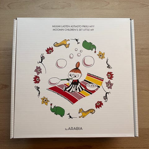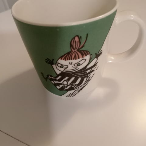 Pikku Myy liukumäessä muki ja kulho. Muki 40e, kulho 20e. Jos otat molemmat, niin hinta on 50e. Astiat hyvässä ja siistissä kunnossa. Koiratalous. Rajakylä.