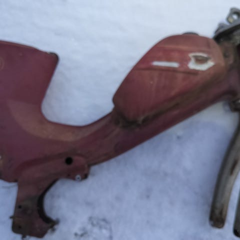 Ollut ladossa vuosikymmenet, mutta hyvin säilynyt ja suurin osa tärkeimmistä osista tallessa. Runkonumero ja tyyppikilpi tallessa eli saa rekisteriin.