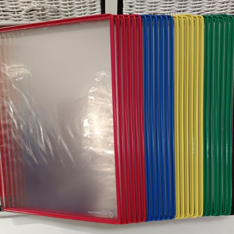 Tarifold A4 kolmiosainen pöytänäyttöteline on tarkoitettu A4-kokoisten asiakirjojen ja julisteiden esillepanoon. Teline koostuu kolmesta osasta, jotka mahdollistavat useiden dokumenttien esittämisen samanaikaisesti. Materiaali on kestävä ja soveltuu esimerkiksi toimisto- tai messukäyttöön. 10 selailutaskua. Uusi avaamaton pakkaus.