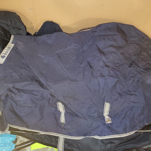 Bucas celtic stable medium loimi 6'9 eli 155 cm. Sisällä fleecevuori ja vähän täytettä, vastaa noin 100 - 150 g. Edessä pieni magneetti kiinnitys ja solki. Pesty, mutta käytönjälkiä näkyy ja vuoressa vähän karvoja. Ei reikiä. Mukana kaulakappale, jossa ei täytettä. Alareunan sisäpuolen pinta kuoriutuu, näkyy kuvassa.