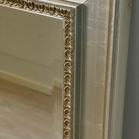 Myydään koristeellinen peili. Reunukset tummaa puuta. Mitat: korkeus 70cm leveys 60cm.