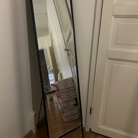Varattu! Kuvan mukainen peili, saatavilla myös jalalla. Mitat 160x40cm.