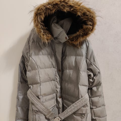 Luhta naisten beige talvitakki hupulla koko 44