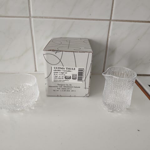 Iittala Ultima Thule sokerikko ja kermakko. Design Tapio Wirkkala.