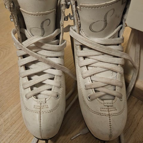 Lasten säädettävät luistimet koko 30-33, mustavalkoinen. Luistimet ovat olleet vähällä käytöllä, hyvä kuntoiset ja siistit. Mukaan suojat. Helppo säätää kokoa.