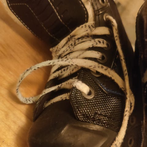 Luistimet, koko 30. Terissä ei ruostetta, valkoisessa osassa jälkiä.
