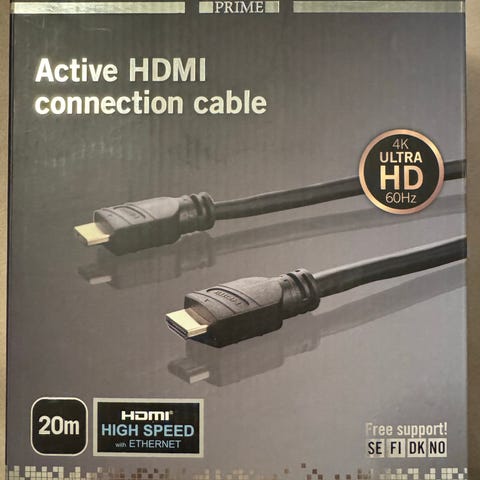 Avaamaton paketti! Deltaco Aktiiv. HDMI-kaapeli, HDMI High Speed with Ethernet, 4K, UHD. Johdon pituus: 15 m, Liitin 1: HDMI-tyyppi A (vakio), Liittimen 1 sukupuoli: Uros, Liitin 2: HDMI-tyyppi A (vakio), Liittimen 2 sukupuoli: Uros, Liittimien kontaktipinnoite: Kulta, HDMI-versio: 1.4, Enimmäiserottelutarkkuus: 3840 x 2160 pikseliä, Tiedonsiirtonopeus: 10,2 Gbit/s, Tuotteen väri: musta