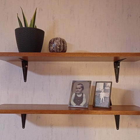 (hylly, hyllykkö, avohylly, avohyllyt, avohyllykkö, seinähylly, seinähyllyt, 50-luku, 50-luvun, 60-luku, 60-luvun, tiikki, teak, vintage, vanha)