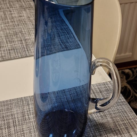 Lasikannu on hyvässä kunnossa, ollut tuotannossa 50- & 60-luvuilla.
