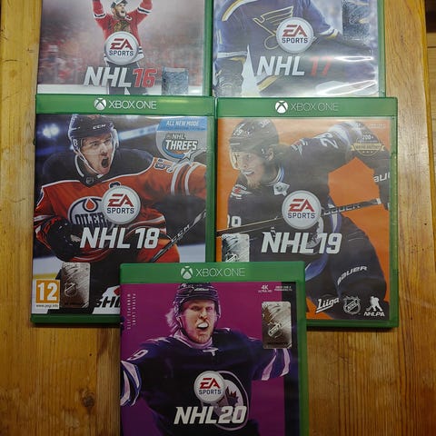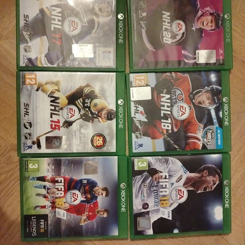 Xbox One -konsolille tarkoitettuja NHL-pelejä eri vuosilta: NHL 18, NHL 20, NHL 21, NHL 22, NHL 23. Lisäksi WRC 8 ja WRC 9 rallipelit Pelit ovat Xbox One