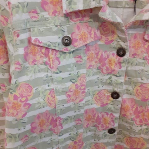 Sininen farkkutakki naisille, koko XXL. Takki on valmistettu denim-materiaalista ja kuuluu naisten vaatteisiin. Emery rose. 85 % puuvillaa, 13 % polyester ja 2 % spandex