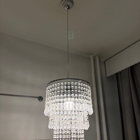 Myydään upea chandelier tyylinen kattolamppu, ostaja joutuu itse fixailemaan ketjun, ei kuitekaan vaikea homma kyseessä. Käytettynä ostettu, ei kuitenkaan ole itsellä ollut katossa.