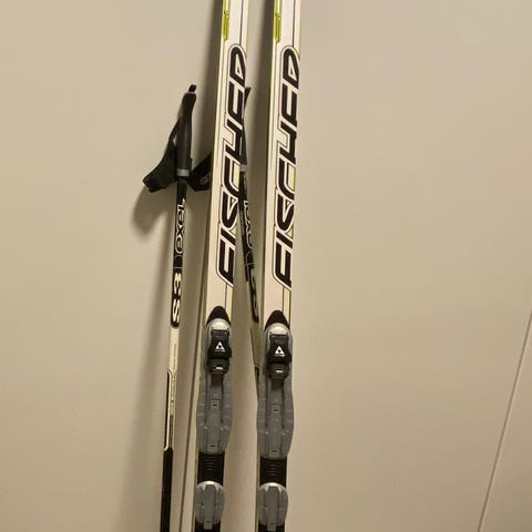 Hyvässä kunnossa olevat Fischer-sukset ja siteet. Halutessa sauvat 135cm mukaan.