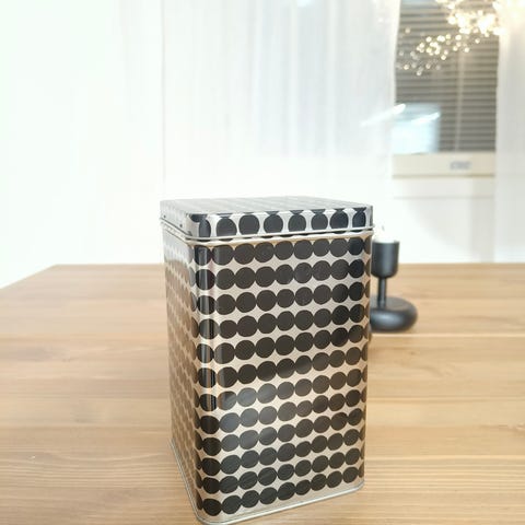 Marimekko Unikko peltipurkki. Ehjä ja siisti, jonkin verran käytön jälkiä.