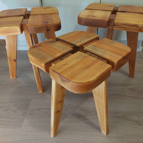 Apila -jakkara, valmistajalta Keravan puusepäntehdas. Jakkarassa on alkuperäinen tummanvihreä väri. Jakkara on vanha ja siinä on ajan patinaa.