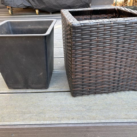 2 kpl valkoisia kukkaruukkuja, joissa on ripustus koukku ja kiinnikkeet. Amppeli -tyyppiset purkit sopivat kukkien ripustamiseen terassi ja kuisti reunalle. Hyväkuntoisia, ehjiä, kerran käytetty viime kesänä. Kukkaruukku on valkoinen ja materiaali on muovi. Koko : leveys 25 cm ja korkeus 15 cm. Kukkapurkki -pari on Helsingissä.