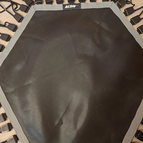 Acon ilmatäytteinen harmaa tasapainorulla sekä täyttöpumppu paine mittarilla ja säilytys & kantokassi..
