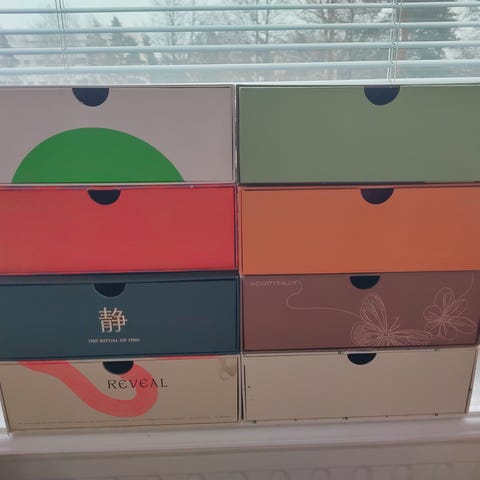 Tyhjät goodiebox laatikot ja tyhjä goodiebox kalenteri. Nouto Matinkylästä