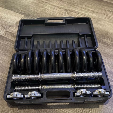 Dumbbell Set käsipainosarja, kokonaispaino 20 kg, musta väri. Sarja sisältää säädettävät käsipainot harjoitteluun. Lemmikkitalous