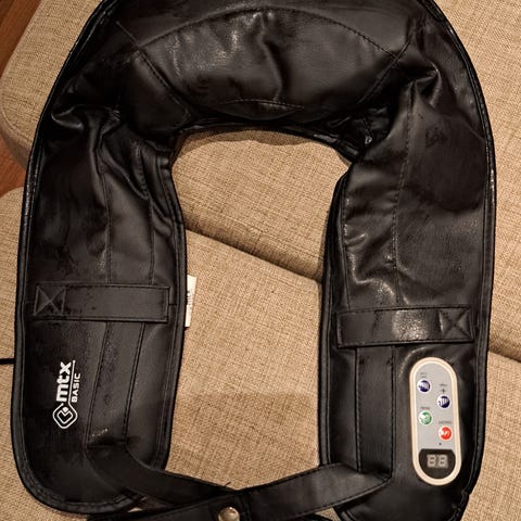 Uudenveroisessa kunnossa oleva niskahierontalaite. Laitteessa mahdollisuus valita lämmitys päälle/pois ja hierontarullien kiertosuunnan voi valita kaukosäätimestä. Mukana laitteen päälle laitettava suoja, jonka avulla laite pysyy puhtaana.