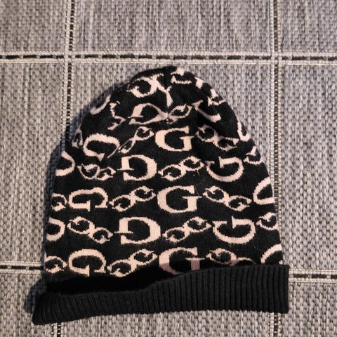 Guess naisten pipo, koko M, väriltään musta ja harmaa. Materiaalista ei tietoa.