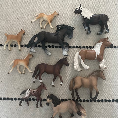 Tyttö myy Schleichinsä seuraavalle keräilijälle/leikkijälle. Myynnissä/tulossa myyntiin mm. Schleich poniagility setti, auto ja traileri, hevonen, mukana mies, koira ja ruokaa,, retkisetti, jossa 2 ponia, ratsastajat ja varusteet, 2 hevosta sisältäen koiran, ratsastajan ja varusteita, kahvila sisältäen hevosen, 2 hahmoa, varusteita sekä paljon irtotavaraa, hevonen sisältäen ratsastajan ja varusteet, hevonen sisältäen 2 koiraa ja varusteet, laidunsetti sisältäen hevosen, 2 ponia, varsan ja aidat, 2 islanninhevosta, hevonen, sisältäen 2 varsaa ja puput, hevonen, hevonen sisältäen varsan ja ponin, 3 koiraa, 3 ponia, hevonen, hevonen, sisältäen oravan, puput ja omenat, kotieläimiä, talli sisältäen 3 hevosta, 2 hahmoa, 3 koiraa sekä muita tarvikkeita ja ruokia, pesupaikka sisältäen hevosen, hahmon ja muut tarvikkeet, palkintosetti sisältäen 3 hevosta, yhden hahmon, 2 kukkalaatikkoa, palkinnot ja suitset, kenttä ja esteet sisältäen aidat, portin, esteet, 2 hevosta, ponin, 2 ratsastajaa ja varusteet, setti, jossa esteitä, numerokyltit, 2 hevosta, ponin, 2 ratsastajaa ja varusteet, laidunsetti, jossa 2 hevosta, 3 ponia, aidat, 2 koiraa ja ruoat, talli sisältäen 3 hevosta, varsan, hahmon, 2 koiraa sekä muuta varusteet, tarvikkeet ja ruoat, shetlanninponi sisältäen kärryt ja ajajan, pupula, 3 varsaa ja 2 ponia, vuonohevosperhe sisältäen 2 hevosta, varsan ja aidat (harvinaisuus, ei valmisteta enää!), vuonohevonen ja varsa (harvinaisuus, ei valmisteta enää!),