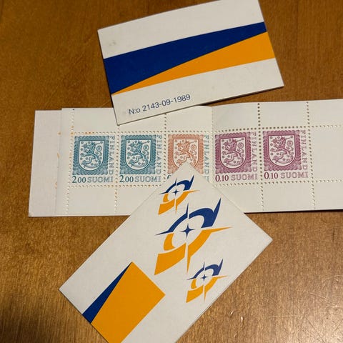 Kaksi postimerkkivihkoa, toisesta otettu yksi merkki, hinta yhteensä kahdelle viholle. Kulkee kirjemaksulla.