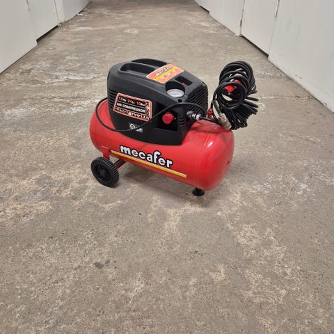 Tästä erittäin vähän käytetty siistikuntoinen 50L kompressori jossa kaksipyttyinen kone