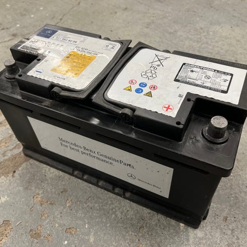 Mercedes-Benz MTX Start Battery AGM -akku, 12 volttia, kapasiteetti 80Ah ja käynnistysvirta 760 A. Akku sopii erityisesti start-stop -järjestelmiä käyttäviin ajoneuvoihin. Mitat: 315 mm x 175 mm x 190 mm. Akulla ikää 2,5 vuotta.