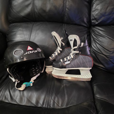 Jofa jääkiekkokypärä ja Atom jääkiekkoluistimet koko 37. Yht 15€. Voi ostaa myös erikseen 10€/kpl