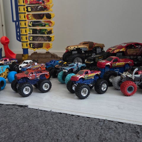 Seitsämän monstertruck autoa. Myydään settinä kaikki kerrallaan. Merkkejä on hotwheels ja monsterjam, isoimmassa (vihreä) ei lukenut merkkiä).