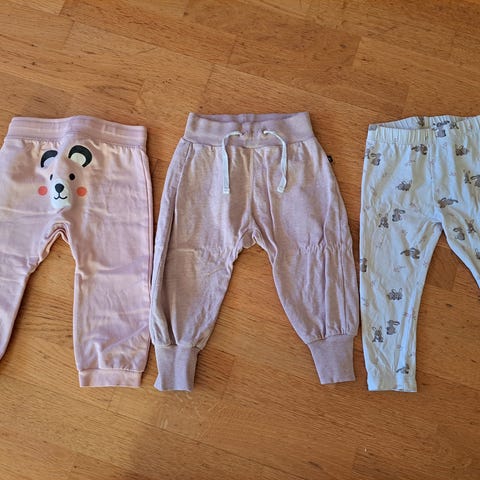 H&M 86cm, vastaa pienempää. Name it 80cm, näissä pyllyssä pieni tahra.
