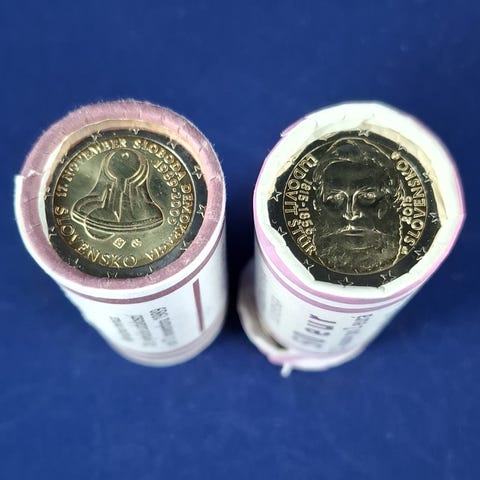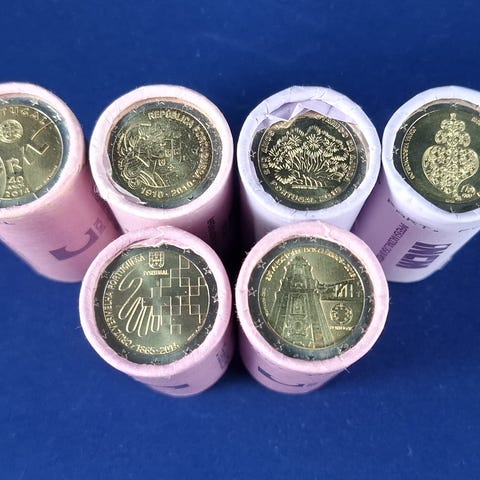 Ehjiä juhlaraharullia kirkkaissa muovisissa suojaputkissa.