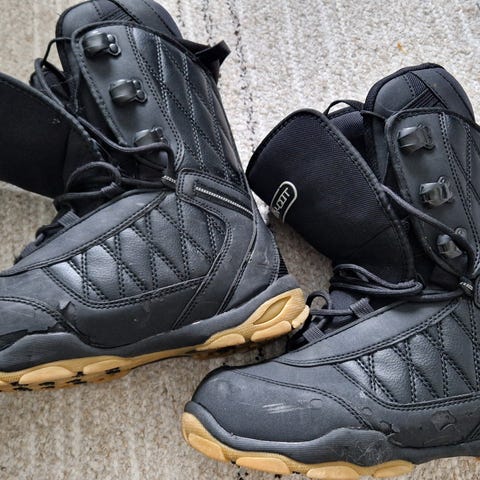 Myynnissä paljon käytetyt Flow Vega Coiler lumilautakengät näppärällä Boa nauhoituksella. Kulumaa ja käytön jälkeä on runsaasti, mutta toimii edelleen.