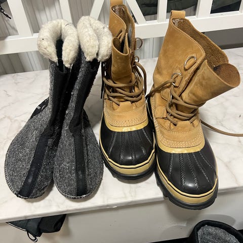 Hyvässä kunnossa, ehjät ja siistit Sorel Caribou talvikengät koko 38 2/3