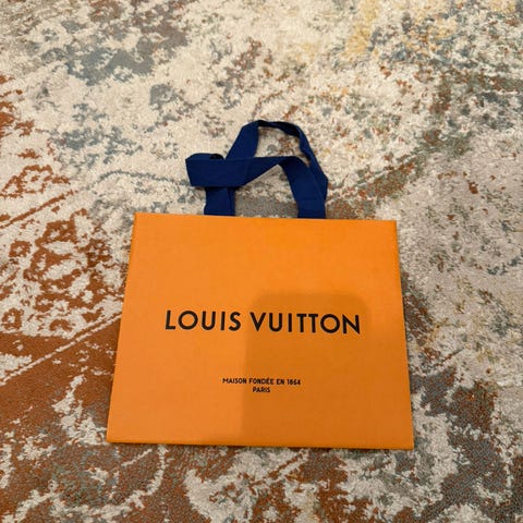 Moitteettomassa kunnossa oleva Louis Vuitton paperikassi, esim. lahjaksi menevälle second hand löydölle, jolle ei ole alkuperäistä paperikassia, koko 25