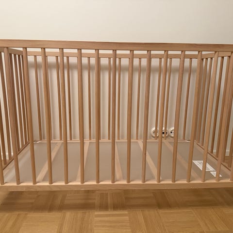 Myydään Ikean Sniglar pinnasänky. Oli meillä käytössä pinnasänkynä sekä taaperolaidan kanssa. Taaperolaitaa varten porattu yksi ylimääräinen reikä päätyyn (kts viimeinen kuva). Laita tulee mukana :)