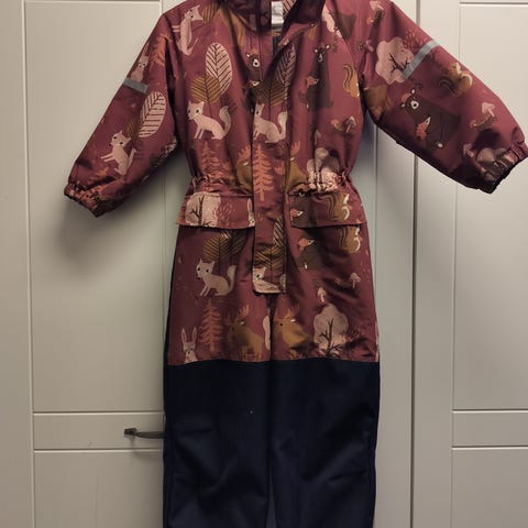 Kaksiosainen toppapuku, jossa Lassien todella lämmin takki. Käytön jälkeä on hihoissa ja helmassa, mutta lämpöominaisuudet edelleen tallella. Jonathanin toppahousut, joista puuttuu jalkalenksut ja polvissa ja pepussa pientä käytössä tullutta pehmentymää. Molemmat pesty hajusteettomasti.