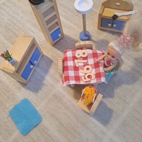 Puinen nukkekoti, jossa on kaksi kerrosta ja useita huoneita,valo toimii paristolla.Käsin tehty yli 50 vuotta vanha. Kalusteitakin saa mukaan