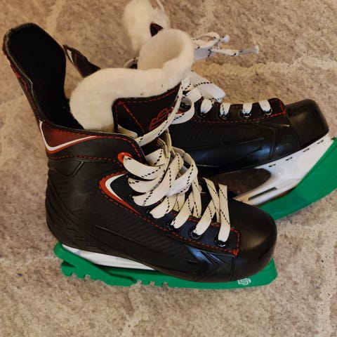 Maple lasten jääkiekkoluistimet, koko 38. Luistimissa musta väritys ja valkoiset nauhat. Soveltuvat jääkiekkokäyttöön. Sisältää teräsuojat.