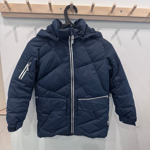 Reima, 122. Untuvatakki. Hihat saa irroitettua, joten voi käyttää myös untuvaliivinä. Kunto oikein hyvä.