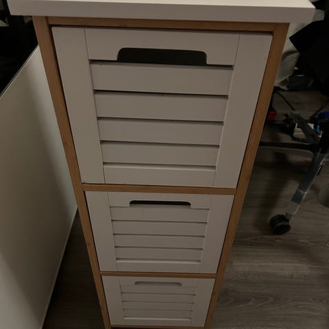 Tarvikevaunu, siirrettävä lipasto, jossa on läpinäkyvä vetolaatikosto. Hyvä kunto, uudenveroinen ja täysin ehjä. Pyörillä varustettu, monikäyttöinen säilytysvaunu, jossa on lokerikko -osassa neljä ulos vedettävää laatikkoa. Laatikoissa on hylly -osa, eli sivussa vetokiskot, joita pitkin laatikot liikkuvat ulos ja sisään. Väri : Valkoinen / kirkas laatikosto -osat, runko terästä, kiiltävä, kromattu (väri hopea). Vaunut ovat mitoiltaan : korkeus 80 cm, leveys 32 cm ja syvyys 38 cm. Lipaston alla on 4 kpl pyörä, joiden ansiosta huonekalu liikkuu helposti sivulle esim. kun käyttää pölynimuri siivoamiseen. Huonekalun materiaali on : muovi ja metalli, teräs. Ominaisuudet: Siirrettävä pyörien ansiosta, soveltuu kodin tai työtilan järjestämiseen. Käyttötarkoitus: Ihanteellinen lasten askartelu -tarvikkeiden, toimisto välineiden (sakset, niittikone, tussit) ja meikki ym. pikkutavaroiden säilytykseen. Laatikot ovat hyvän kokoisia myös musiikki CD-levy ja elokuva DVD-levy säilyttämiseen. Kärry on vedenkestävä, valmistettu vettä pitävästä materiaalista, ja sitä voi käyttää myös kylpyhuone kärry -tarkoitukseen suihku -tilassa korivaunu tapaan. Helsingissä.